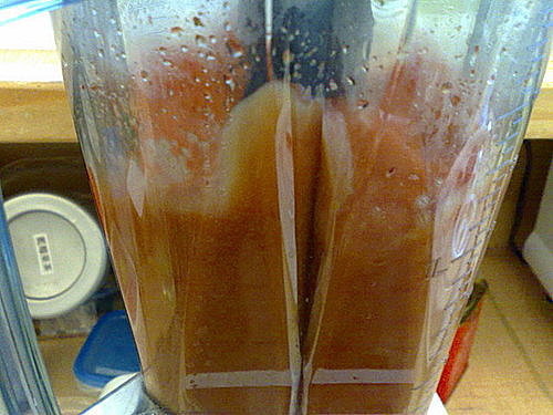 步驟三:加入500 c.c.的水後,果汁機打一分鐘